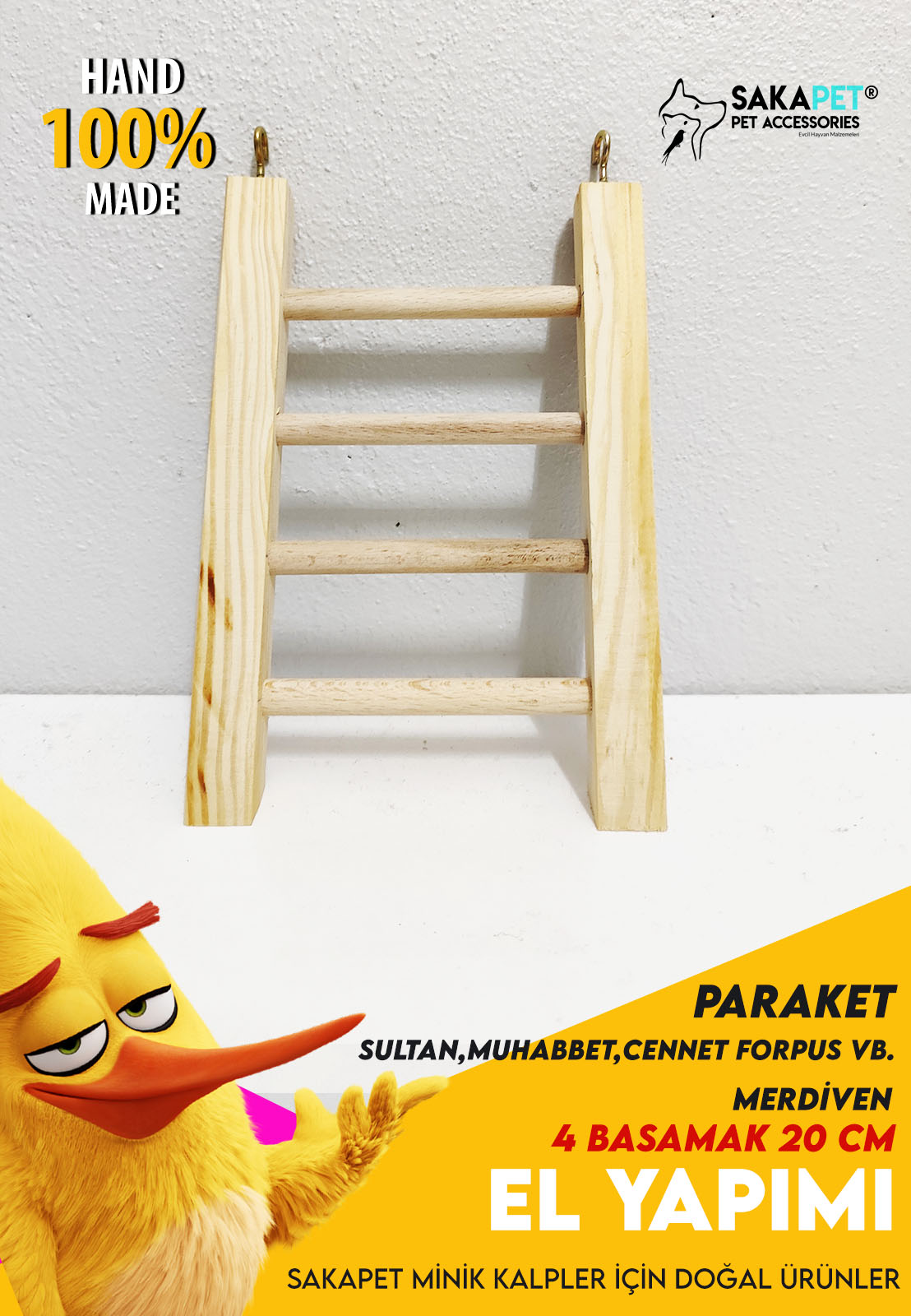 Kuşların doğal hareket ihtiyacı düşünülerek üretilen el yapımı ahşap kuş merdiveni, kafes içi kullanım için tasarlanmıştır. Tırmanma, egzersiz ve oyun ihtiyacını desteklerken doğal yapısı sayesinde güvenli bir kullanım sunar.