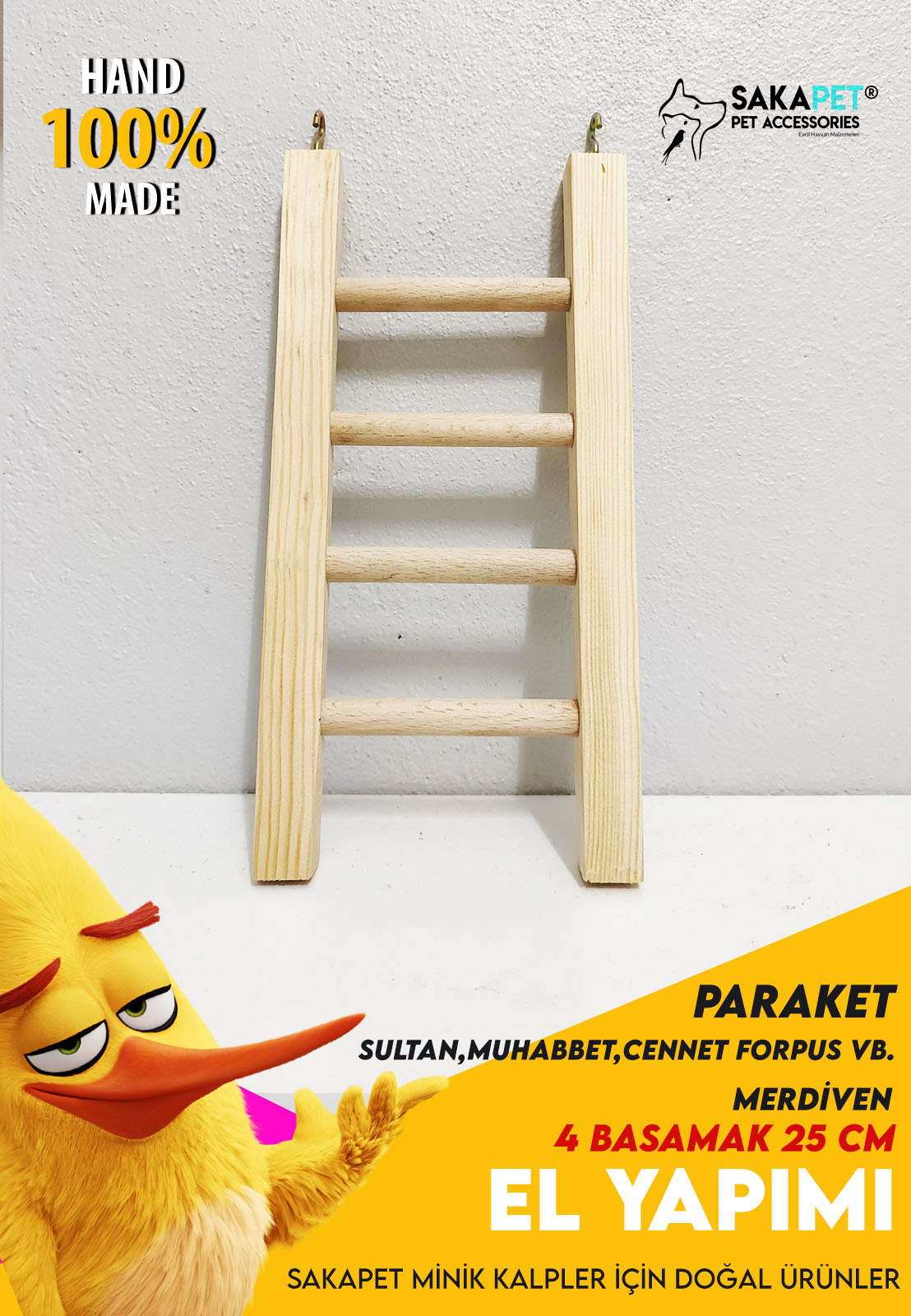 🐦 El Yapımı Ahşap Kuş Merdiveni – 4 Basamak